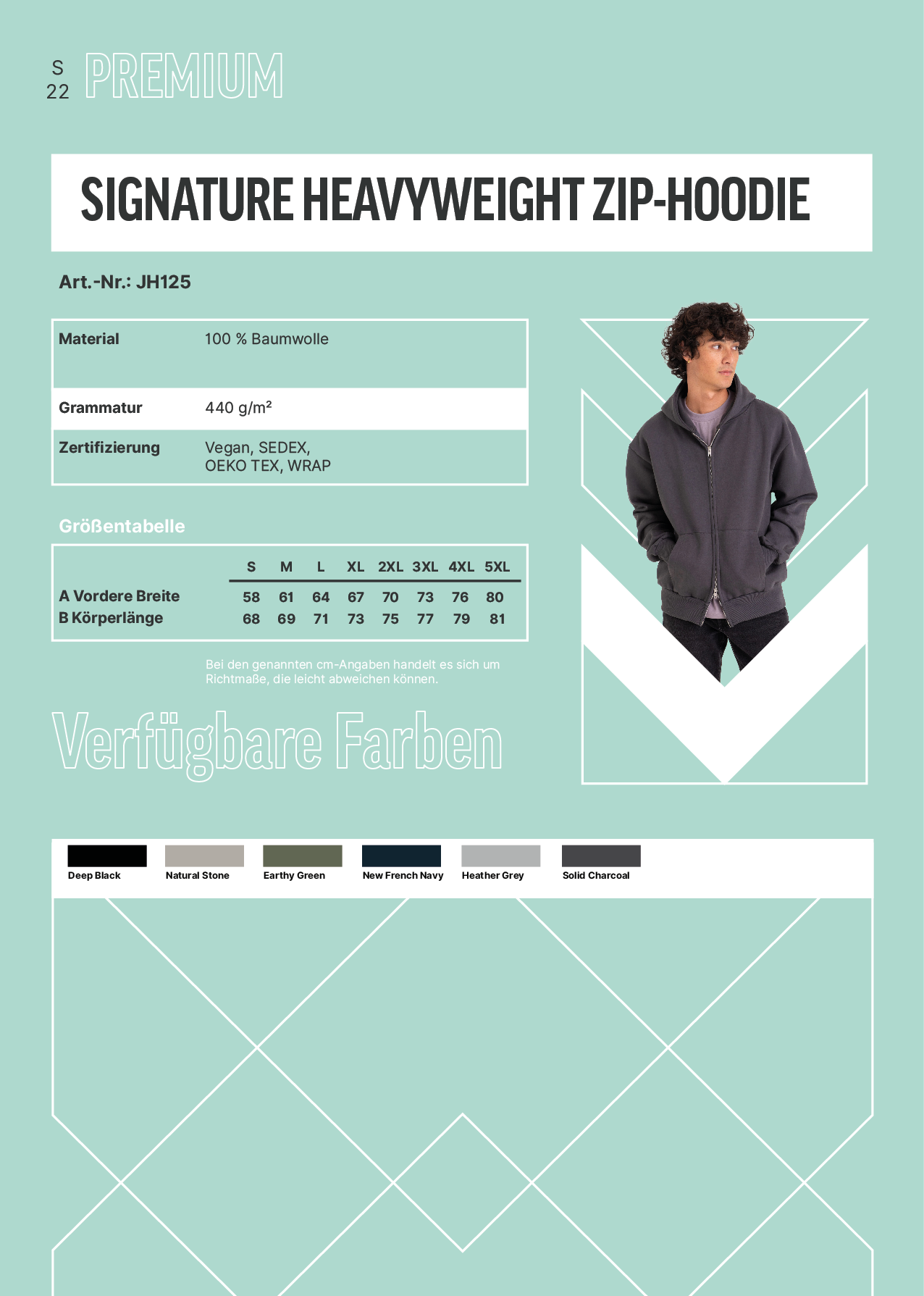 Unser Signature Heavyweight Zoodie ist die perfekte Wahl für alle, die maximale Qualität, Gewicht und Stil suchen. Gefertigt aus dem gleichen luxuriösen 440 g/m²-Material wie unser Signature Hoodie, überzeugt diese Jacke mit einem hochwertigen YKK-Zweiwege-Reißverschluss und einem modernen, kastenförmigen Oversize-Fit. Das schwere, dichte Material verleiht dem Zoodie nicht nur eine erstklassige Haptik, sondern bietet gleichzeitig eine herausragende Oberfläche für individuelle Veredelungen – ideal für Retail, Merchandise und Premium-Produktionen.